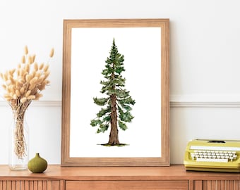 Watercolor Pine Tree Painting Art Print Fir Tree Woodland Tree Greenery Fir Tree Painting Woodland Art Evergreen Tree Decor Wall Art Etsy